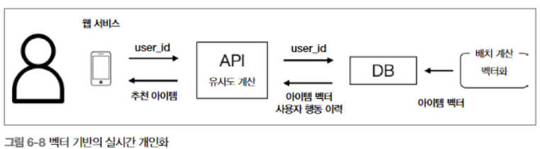 - 배치 유형의 개인화 추천에서는 각 사용자별로 추천하는 아이템을 미리 계산해서 데이터베이스에 저장