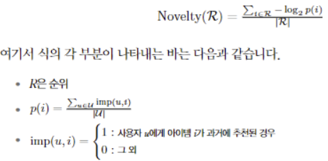 - 신규성은 순위에 대한 추천 아이템이 정말로 새로운지를 나타냄